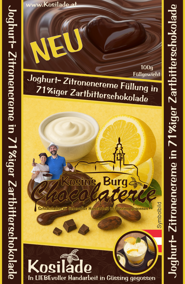 Zitrone- Joghurtcreme • Zartbitterschokolade • Tafelschokolade