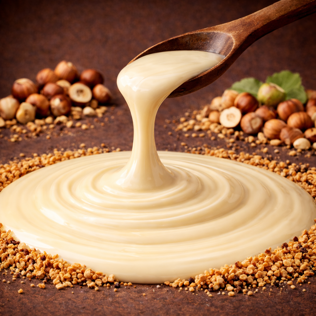 Unsere weiße Schokolade mit knusprigem Haselnusskrokant vereint cremige Sanftheit mit feinem Crunch zu einem besonders ausgewogenen Genusserlebnis. Die zart schmelzende weiße Schokolade bildet die weiche Basis, während der goldbraun karamellisierte Haselnusskrokant für lebendige Struktur, Röstaromen und eine angenehm nussige Tiefe sorgt. Jeder Bissen verbindet süße Cremigkeit mit knackiger Leichtigkeit – harmonisch, rund und wunderbar vertraut.