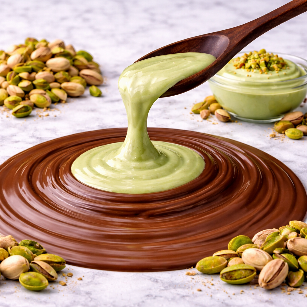 Hier vereinen sich hochwertige Vollmilchschokolade aus Madagaskar mit 38 % Kakaogehalt und eine feincremige Pistazienfüllung, veredelt mit gerösteten Pistazien, liebevoll verarbeitet. Der mild-karamellige Charakter der Vollmilchschokolade harmoniert perfekt mit der nussigen, leicht süßlichen Note der Pistazien. Die gerösteten Kerne sorgen für einen zarten Crunch und runden das Geschmackserlebnis ab, ohne die cremige Schokolade zu überlagern.