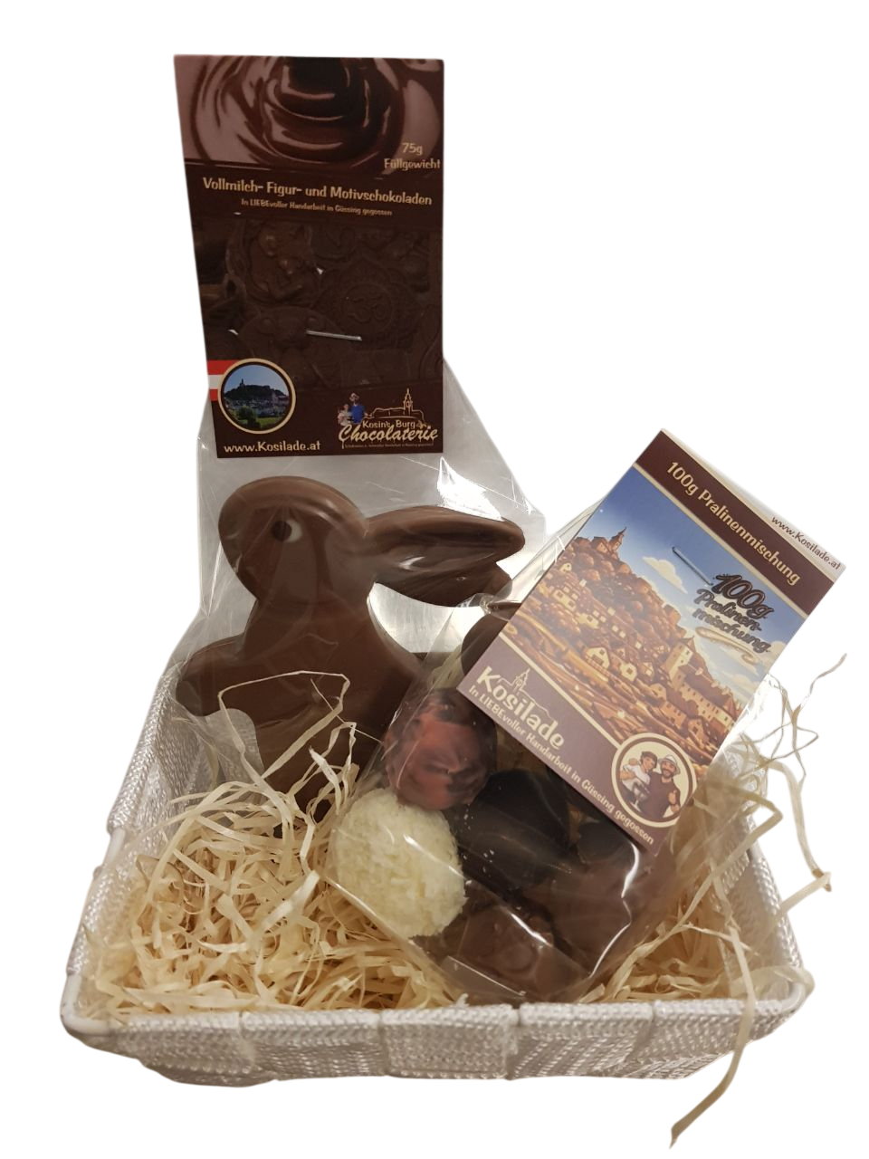 Wie all unsere Produkte wird auch diese Oster-Kombi in unserer kleinen familiengeführten Chocolaterie in Güssing mit viel Sorgfalt und echter Handarbeit gefertigt. Jedes Element wird einzeln hergestellt und anschließend zu diesem harmonischen Arrangement zusammengestellt.
