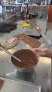 All unsere Erzeugnisse werden in liebervoller Handarbeit verarbeitet. Wir verwenden keine Maschinen. Die größte „Maschine“ in der Schokoladenarbeit sind die drei Wasserbäder. Es gibt keine Temperiermaschinen, keine Füllmaschinen, keine Ausrollmaschinen.